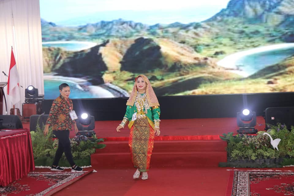 Ibu Niken yang keseharianya tampil dengan sangat sederhana, kali ini Ketua TP.PKK tersebut terlihat anggun dan modis dengan menggunakan pakaian adat suku SAMAWA.